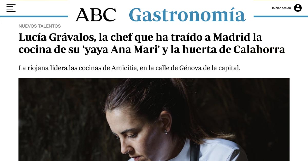 La cocina de Lucía Grávalos, quien lidera los fogones del restaurante Amicitia, no se entiende sin la huerta de Calahorra y su abuela Ana Mari. El diario ABC ha querido conocer la relación entre la joven chef y la gastronomía. Una amistad que se ha forjado cada día, sin condiciones, hasta lograr tener su propio proyecto.
